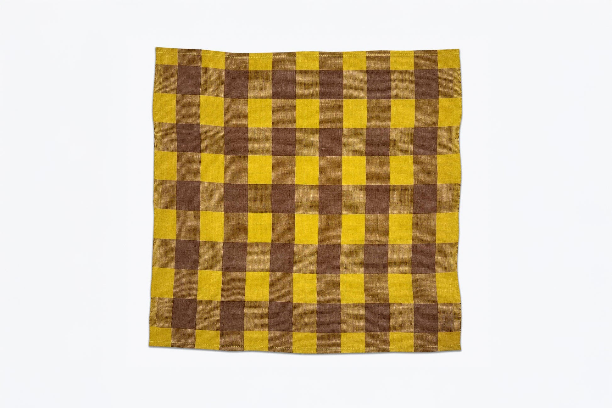 100% cotton plaid napkin in bright yellow and tan. Comes in a pack of 2 napkins. Handwoven in Chiapas, Mexico.