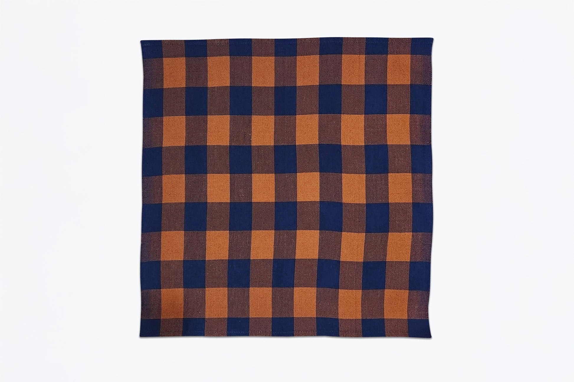 100% cotton plaid napkin in saddle brown and navy blue. Comes in a pack of 2 napkins. Handwoven in Chiapas, Mexico.
