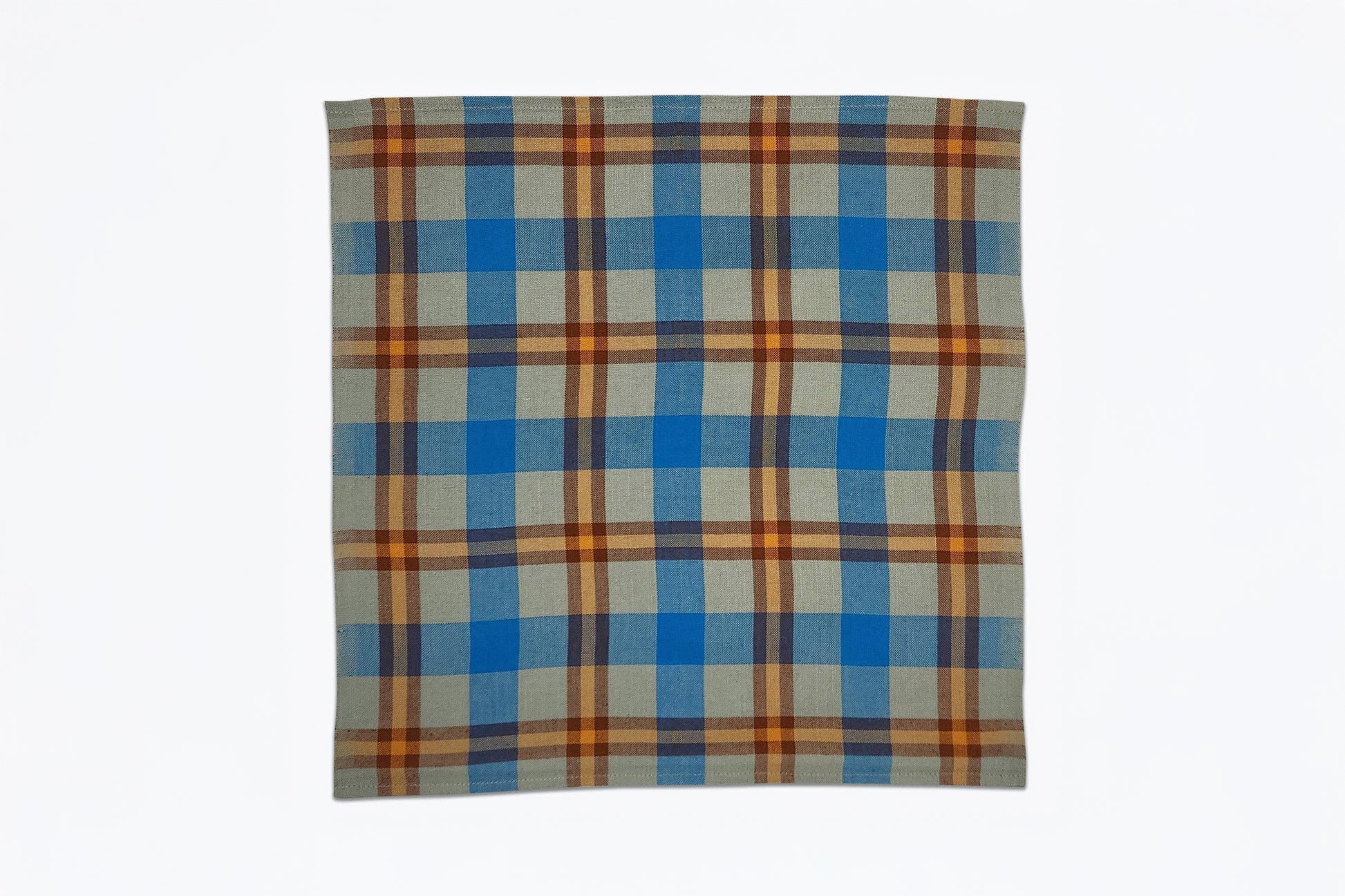 100% cotton plaid napkin in sage green, blue, and rust. Comes in a pack of 2 napkins. Handwoven in Chiapas, Mexico.