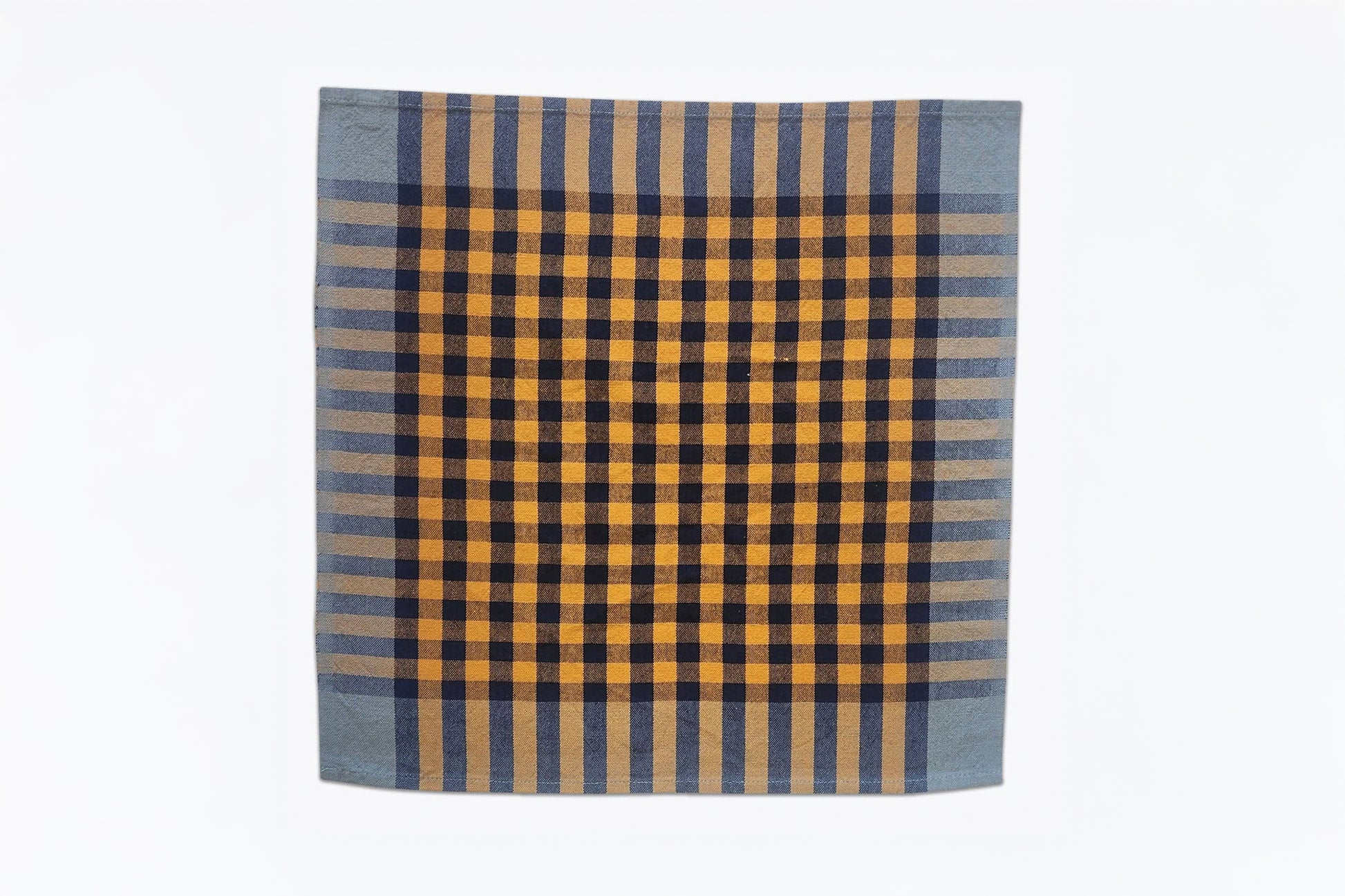 100% cotton plaid napkin in navy, ochre, and slate blue. Comes in a pack of 2 napkins. Handwoven in Chiapas, Mexico.
