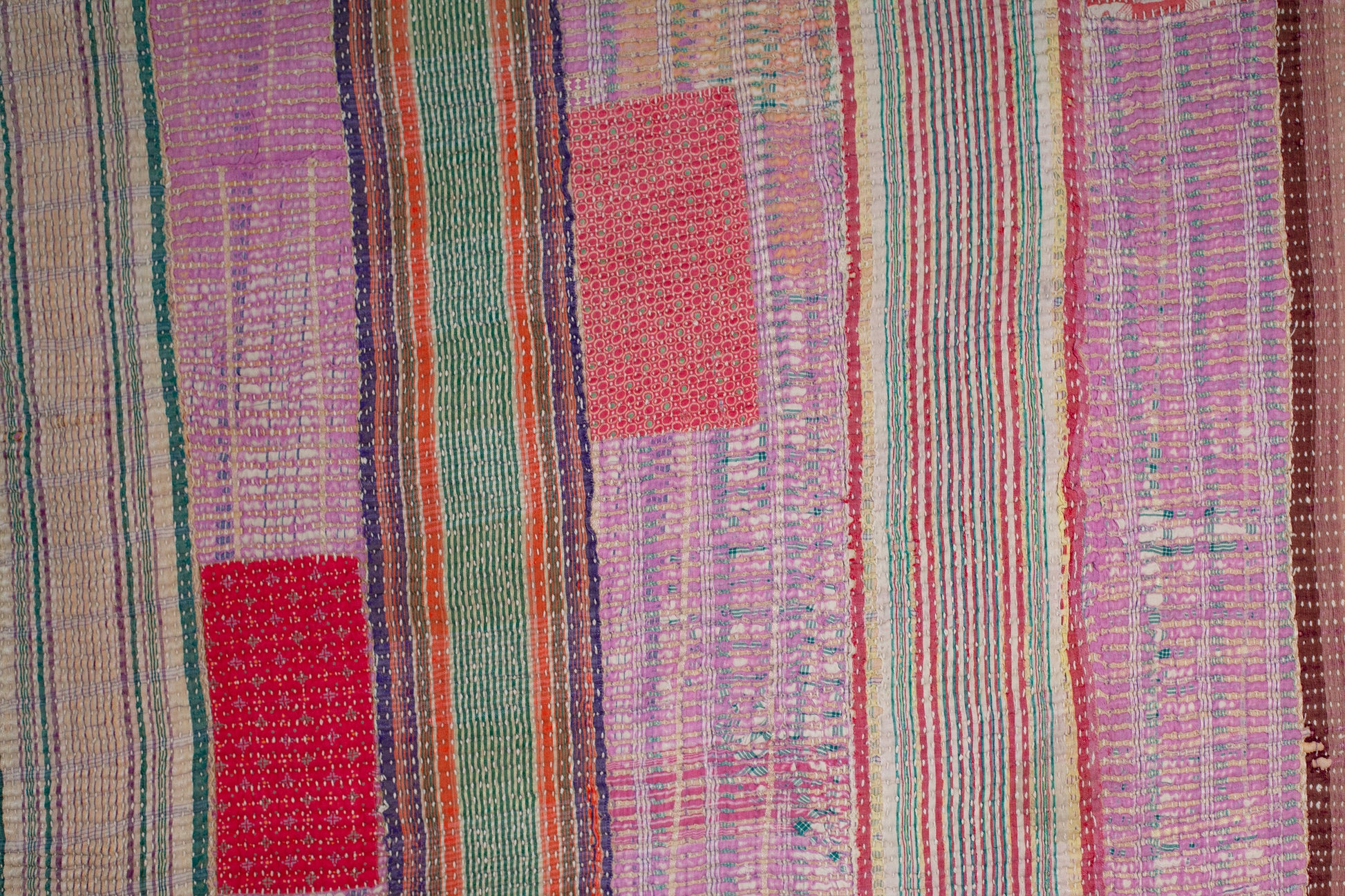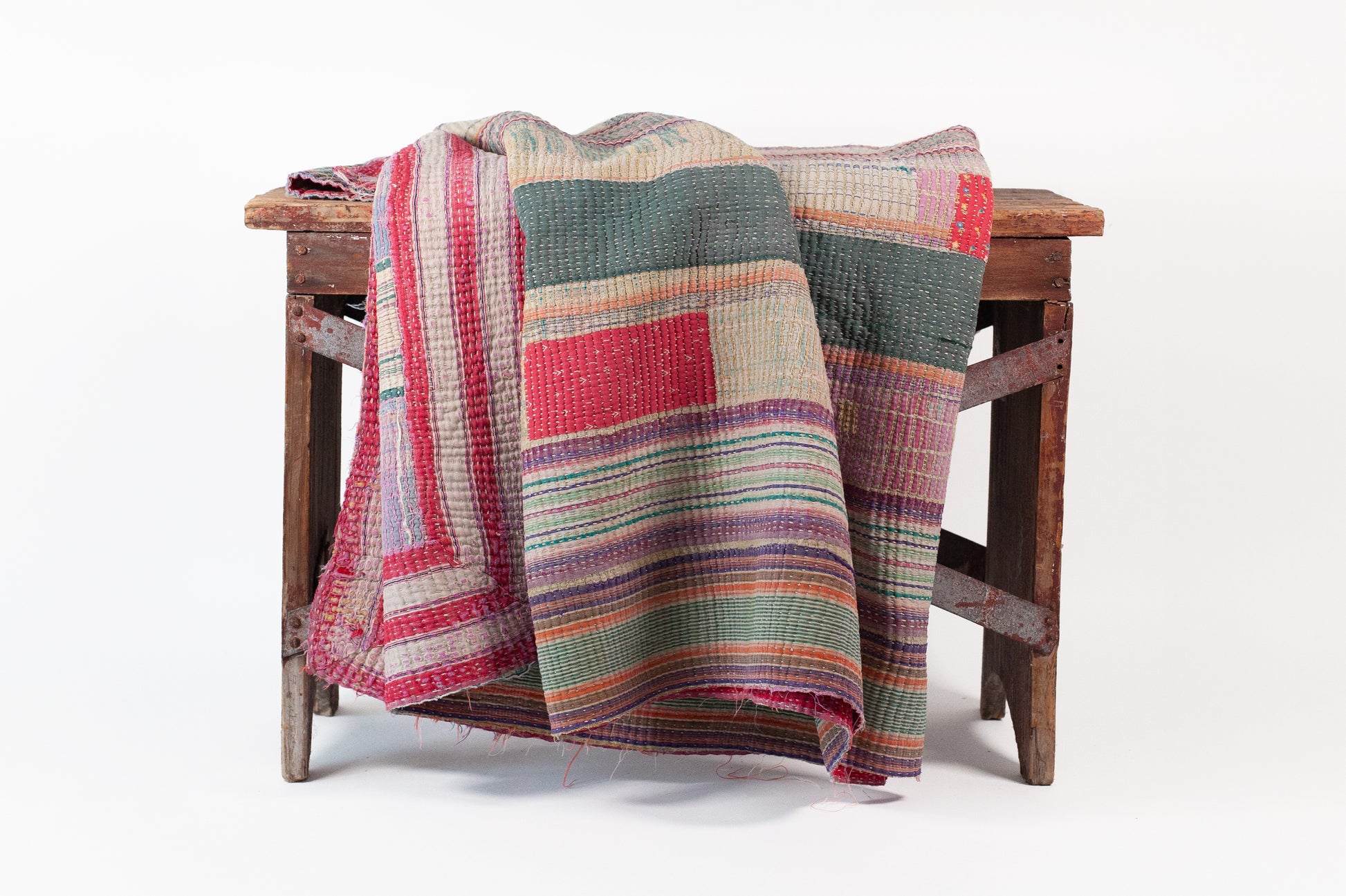 One-of-a-kind quilt made from repurposed vintage cotton saris. Incredibly soft for bedding yet durable enough to use for upholstery. Sourced and prepared in India. Finished in Athens, GA by Aloka.