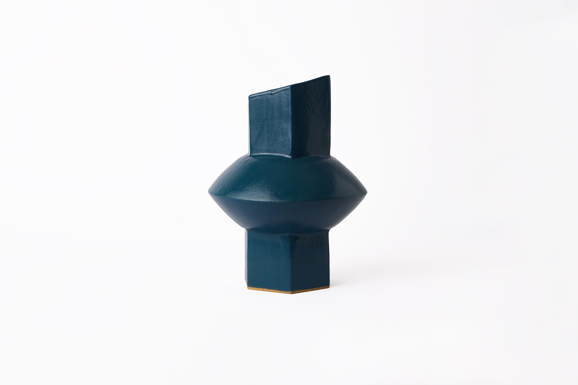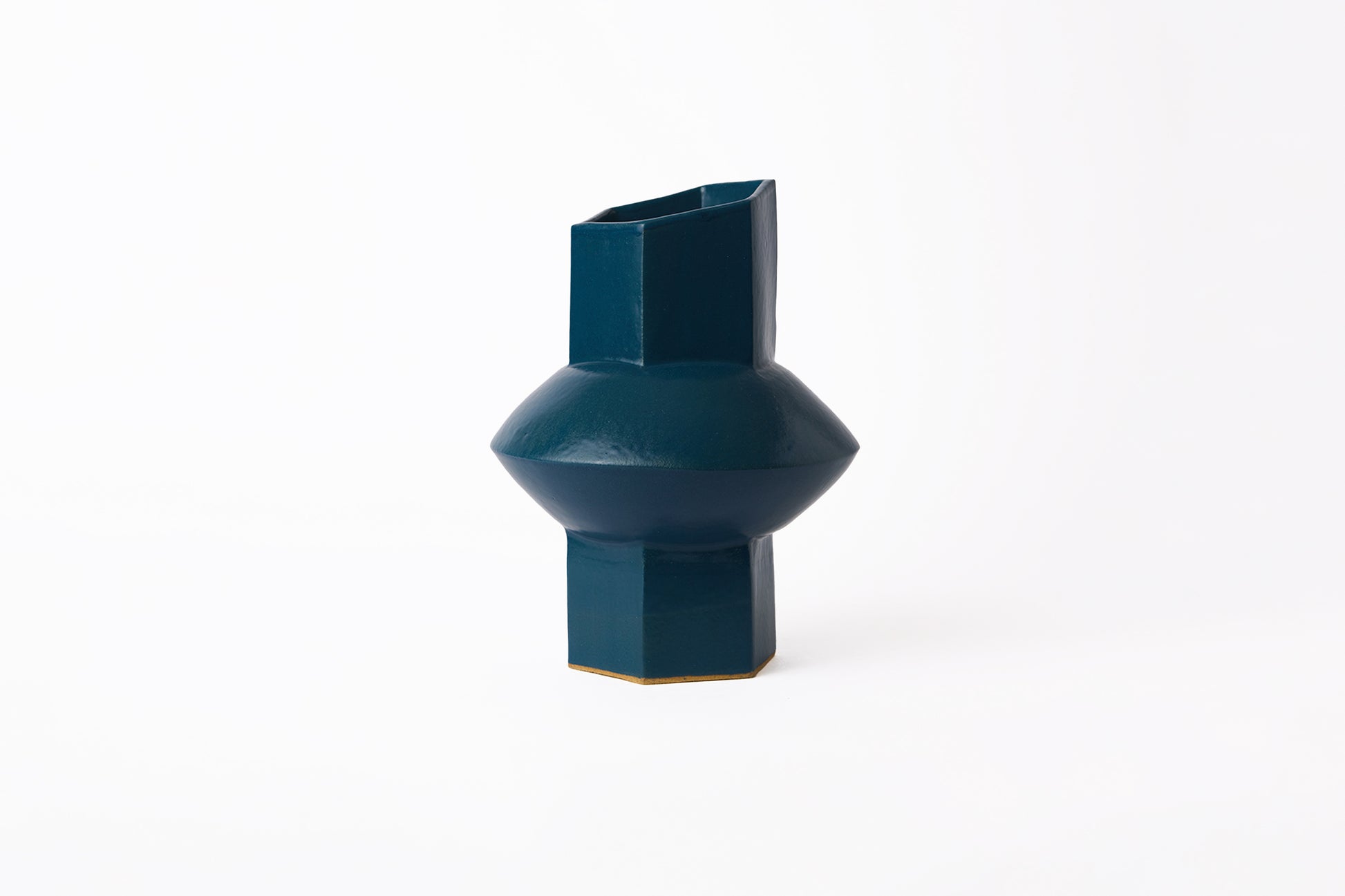 Hand built stoneware vessel in teal blue glaze. Made in Los Angeles, CA.