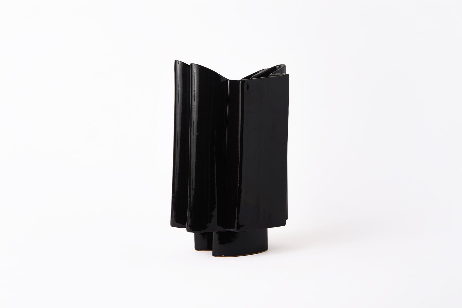 Hand built stoneware vessel in gloss black glaze. Made in Los Angeles, CA.