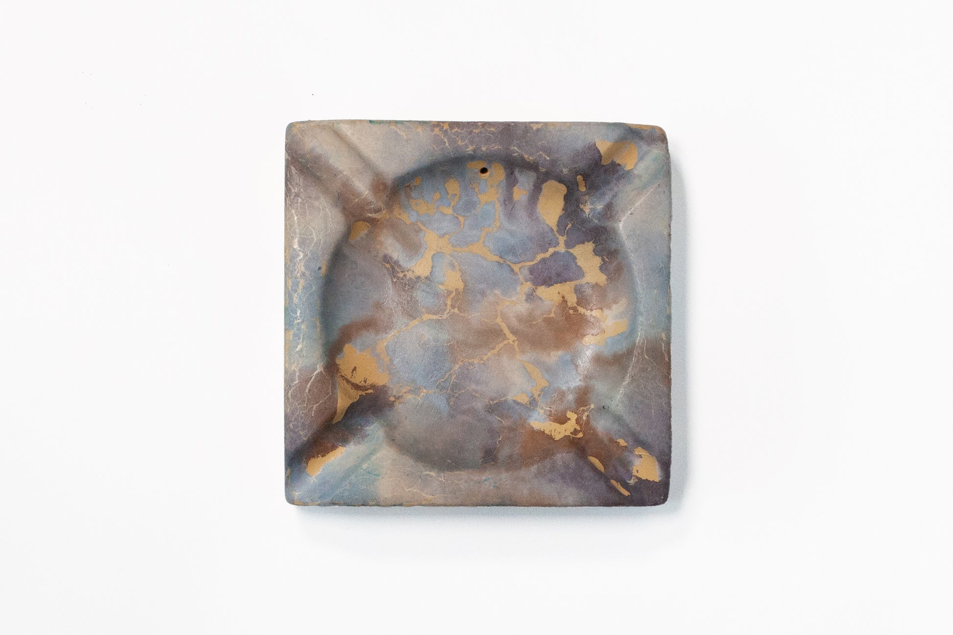 Concrete incense + ash tray with completely one-of-a-kind color pigment pattern. Handmade in Montréal, Québec.