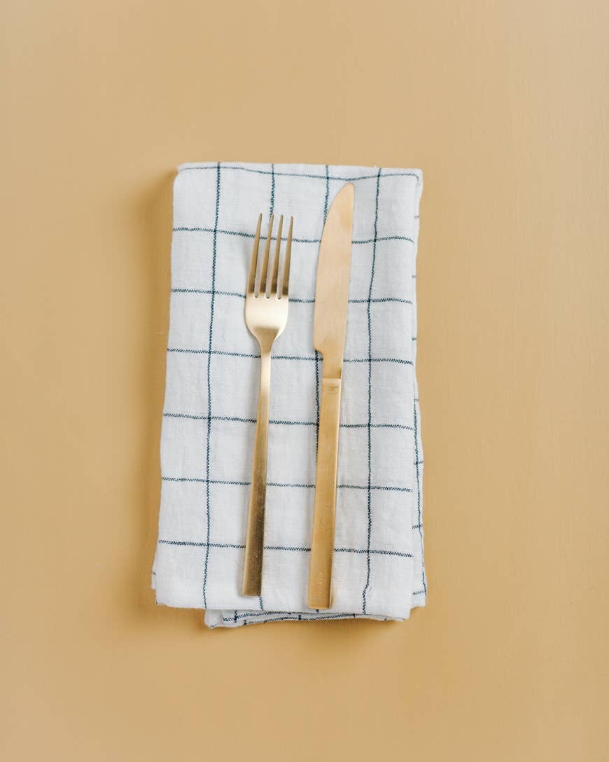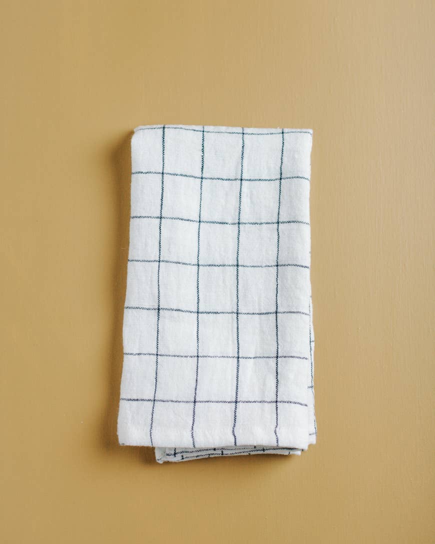 Generously sized dinner napkins in stone washed linen with a classic windowpane plaid. Each has sewn edges to complement this clean, minimalist design. Meticulously woven, dyed and stone washed to perfection in a quiet village in southwest India. Each is made from the finest imported Belgian flax and represents hours of artisan work. Ethically crafted in India.