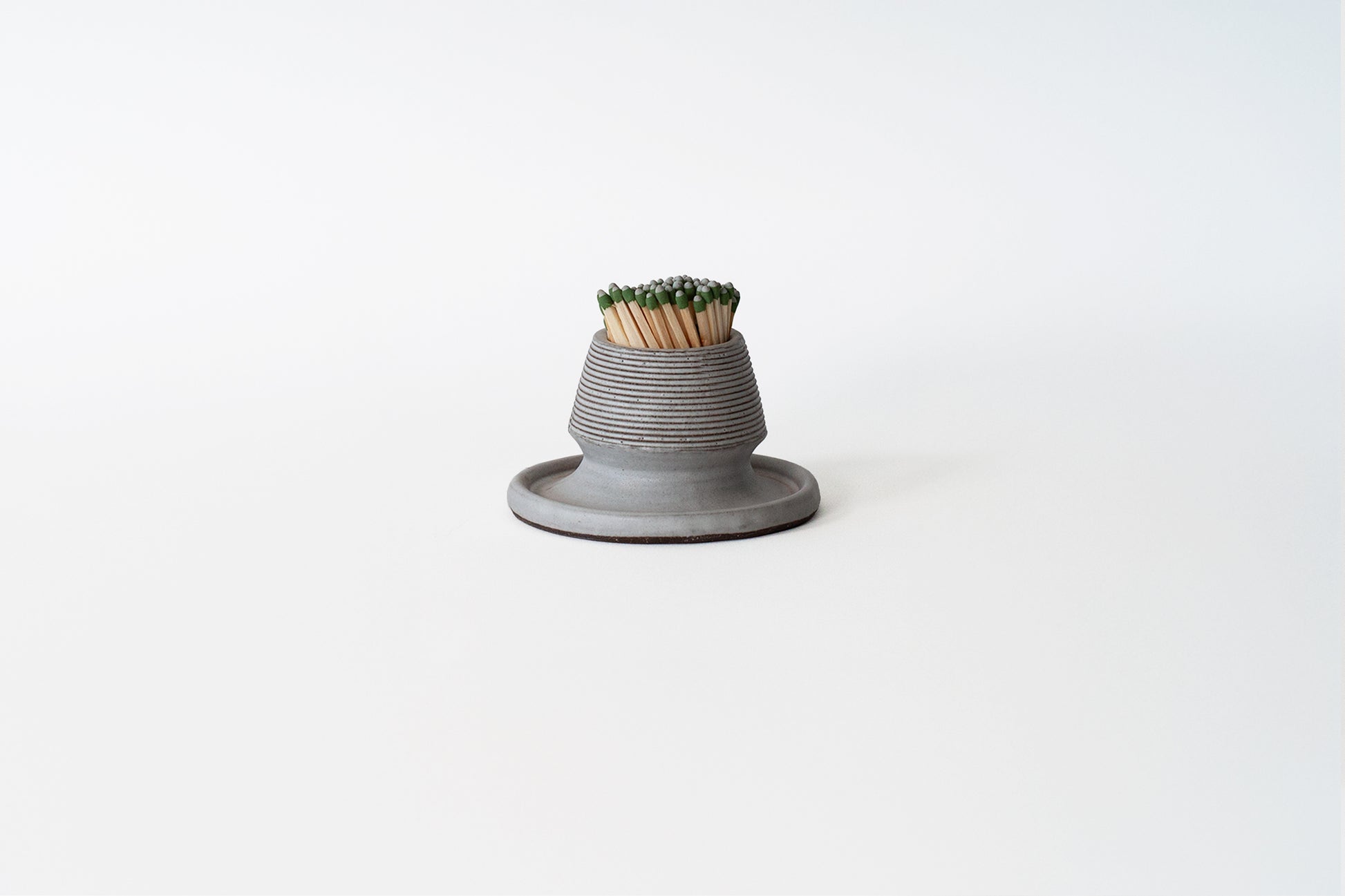Hand thrown stoneware match strike in a grey glaze. Made in Evanston, Illinois.