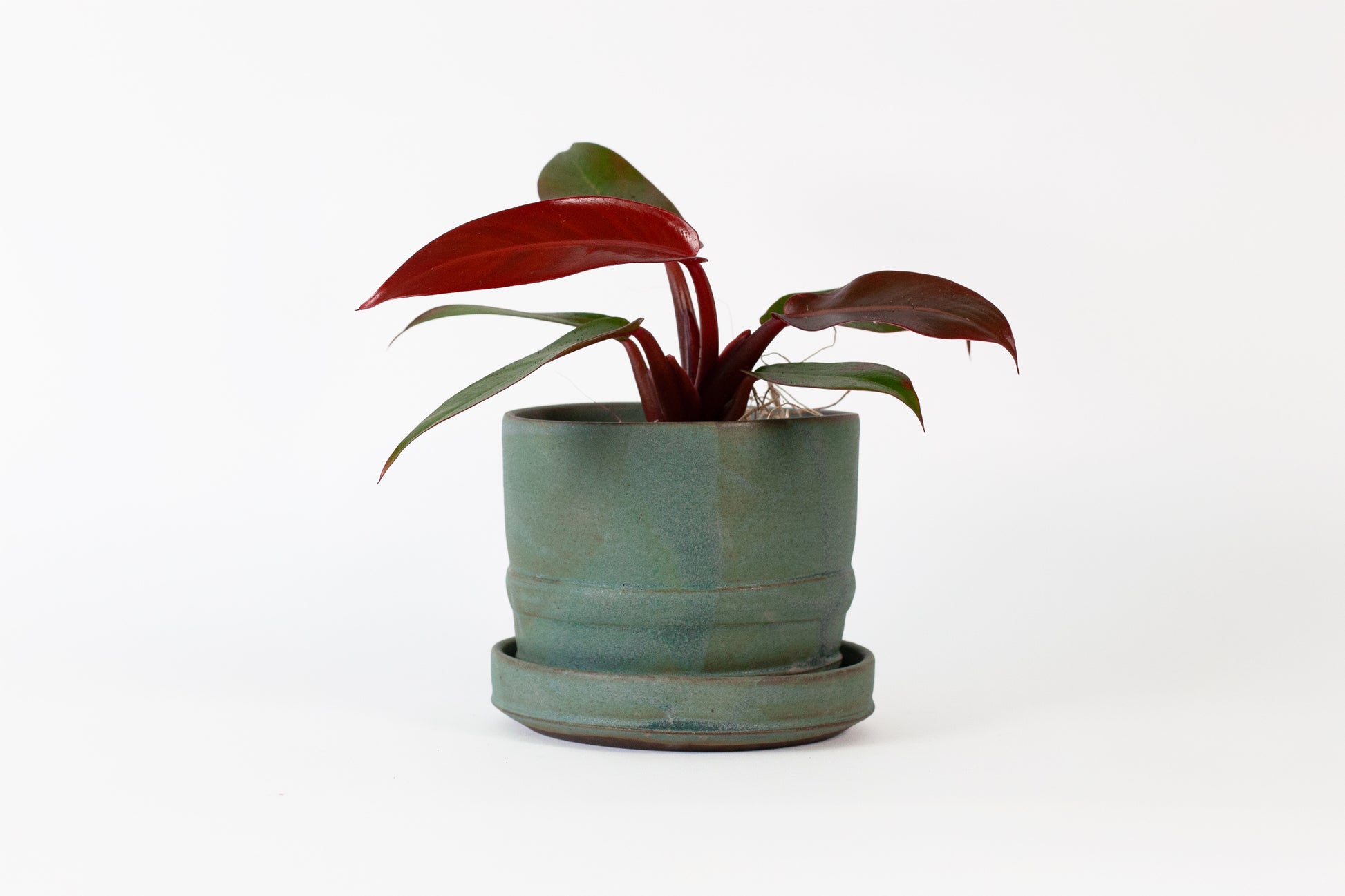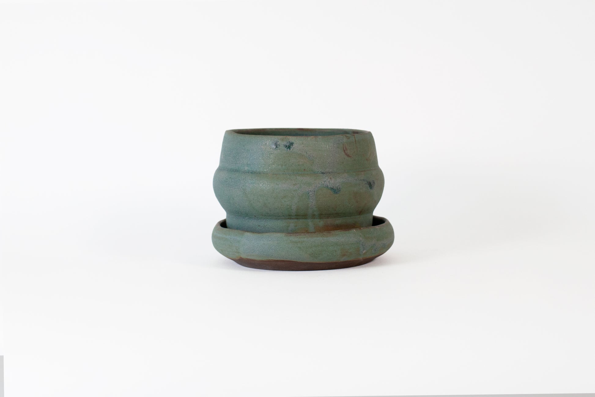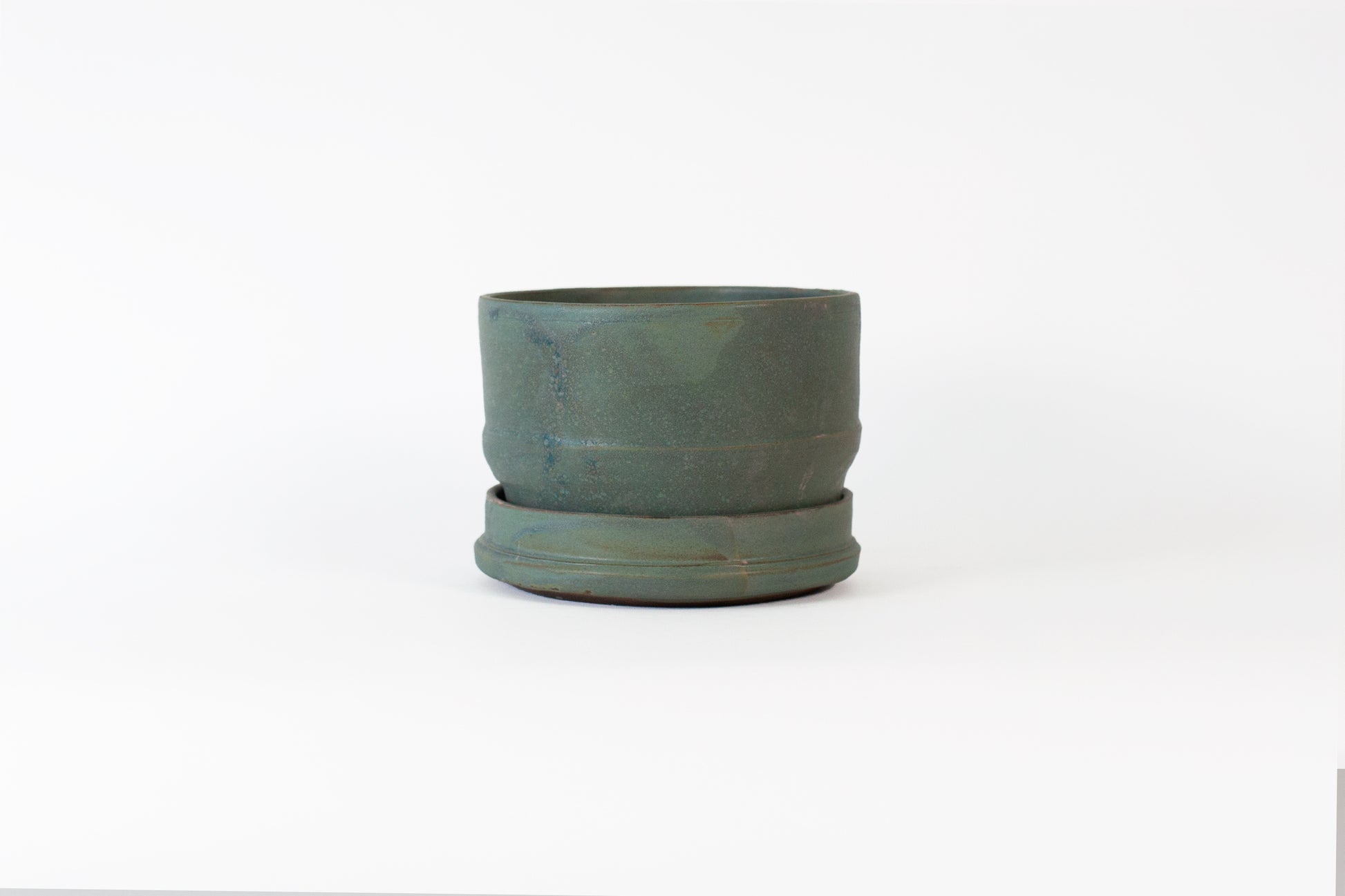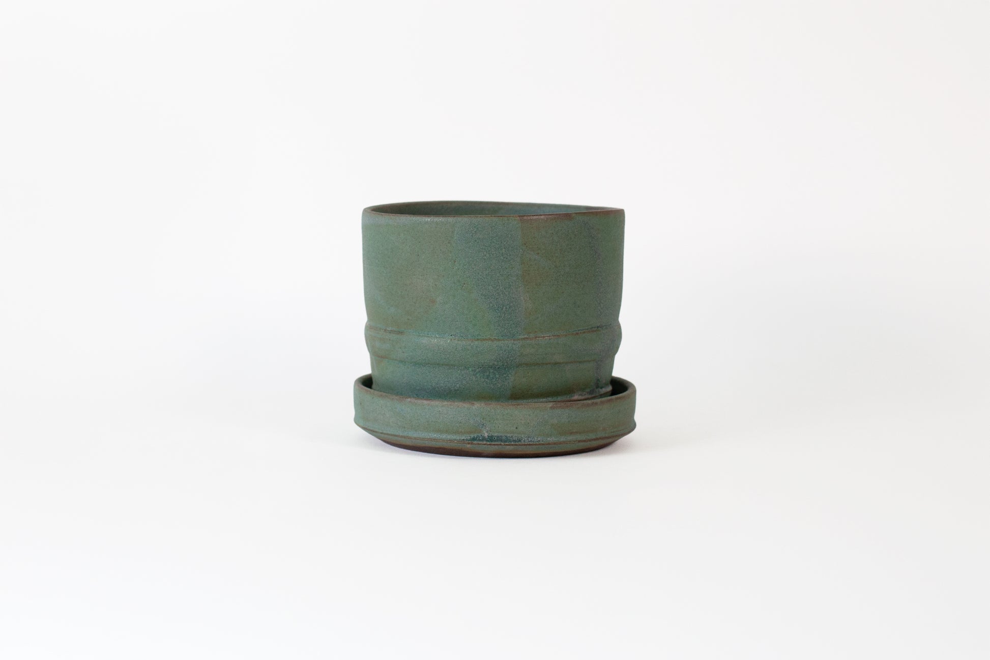 Hand-thrown stoneware planter in a green glaze. Handmade in Evanston, Illinois.