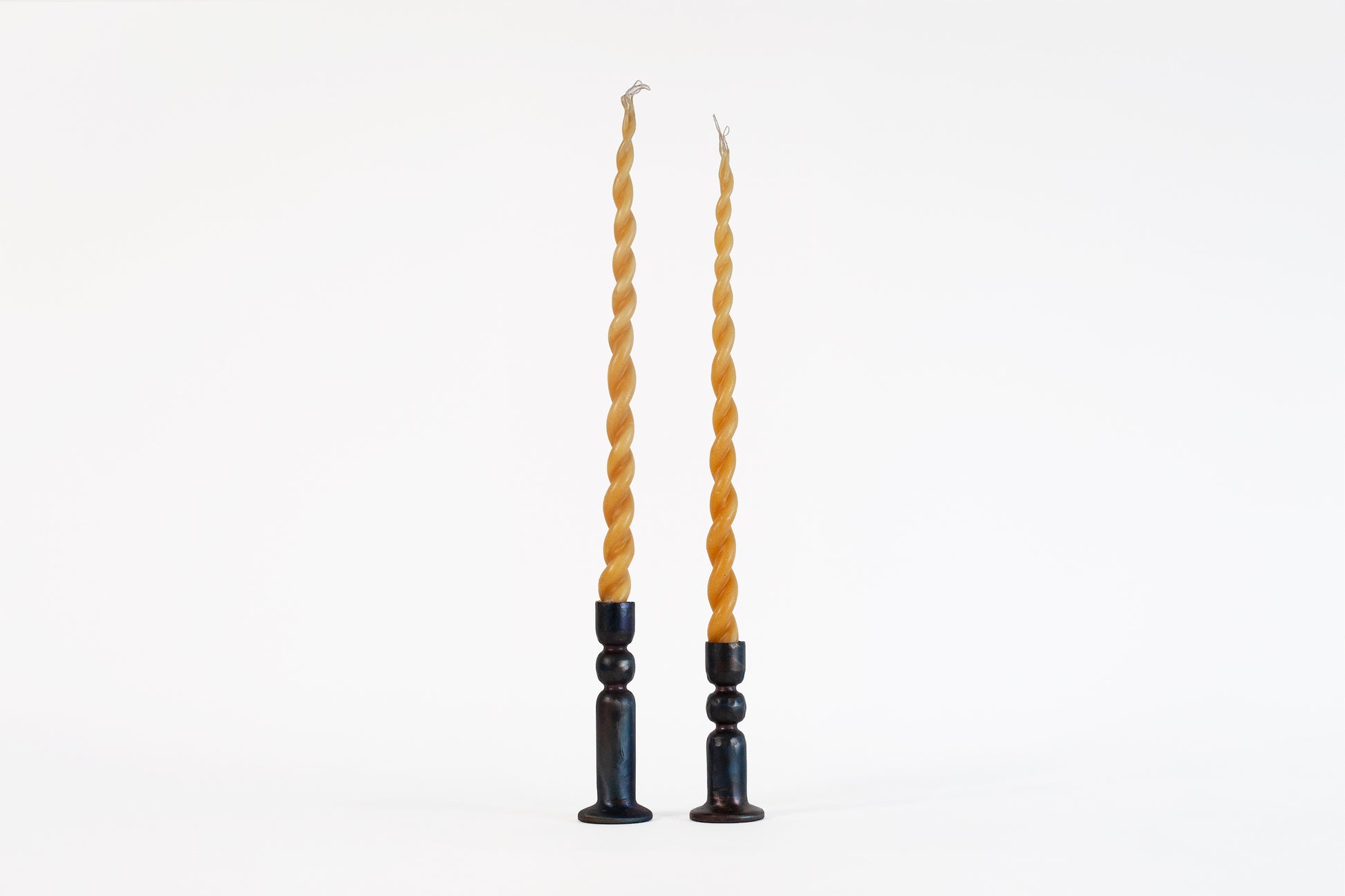 A simple wrought iron candle sticks are hand forged in Umbria, Italy. Available in two sizes. Pair with the Twisted Beeswax Candles.