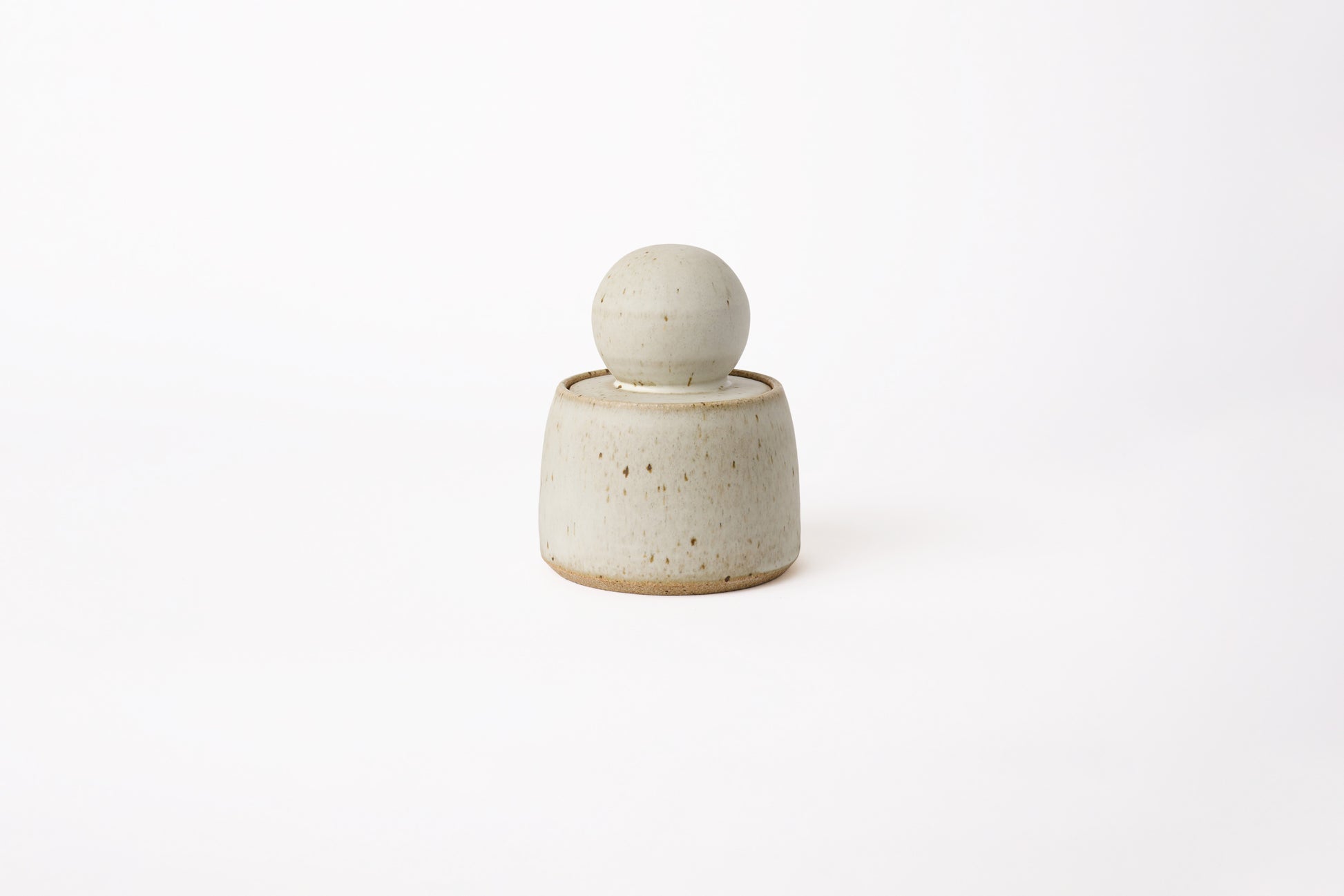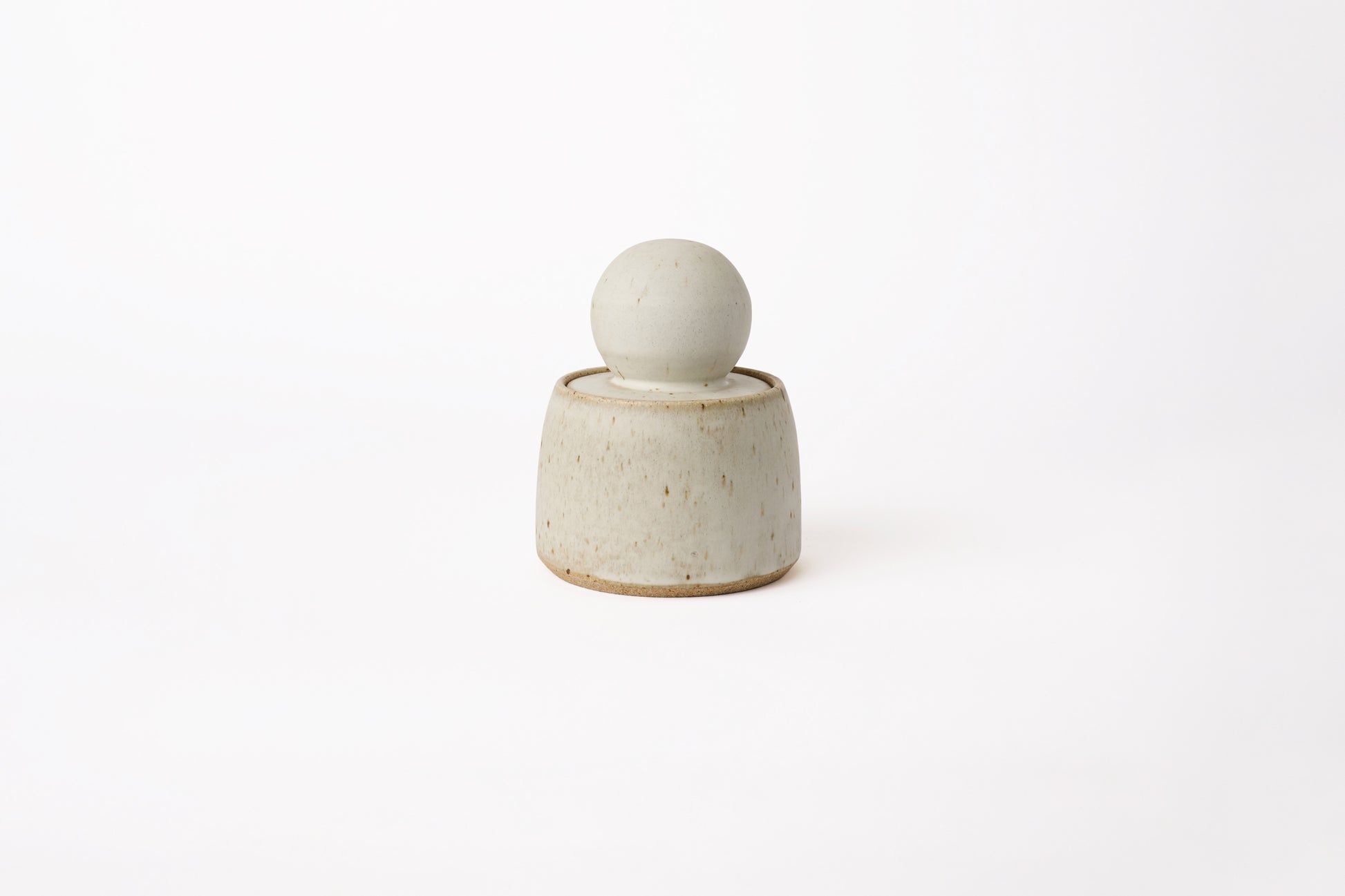 Ceramic jars accented with large chunky knobs and finished with a matte glaze in varying shades of cream and white. Handmade in Los Angeles.