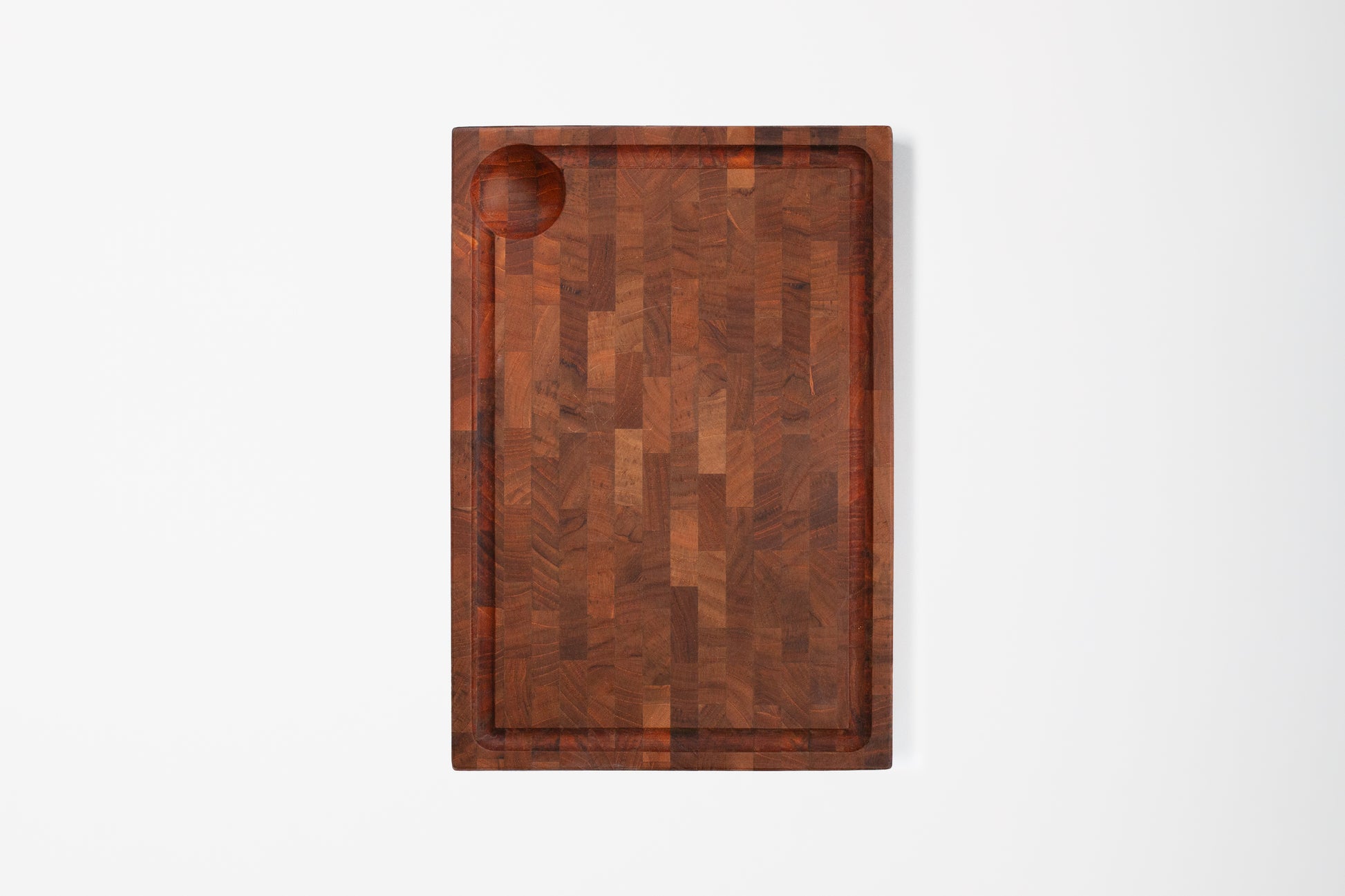 An exceptionally beautiful cutting board assembled using small pieces of teak end grain leftover from Skagerak's furniture production.
