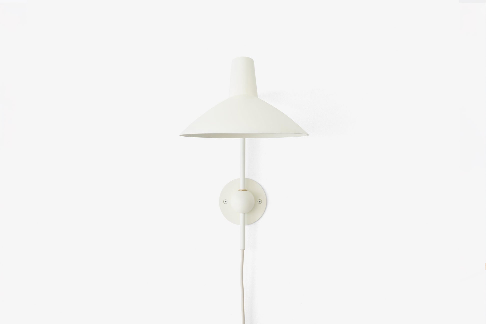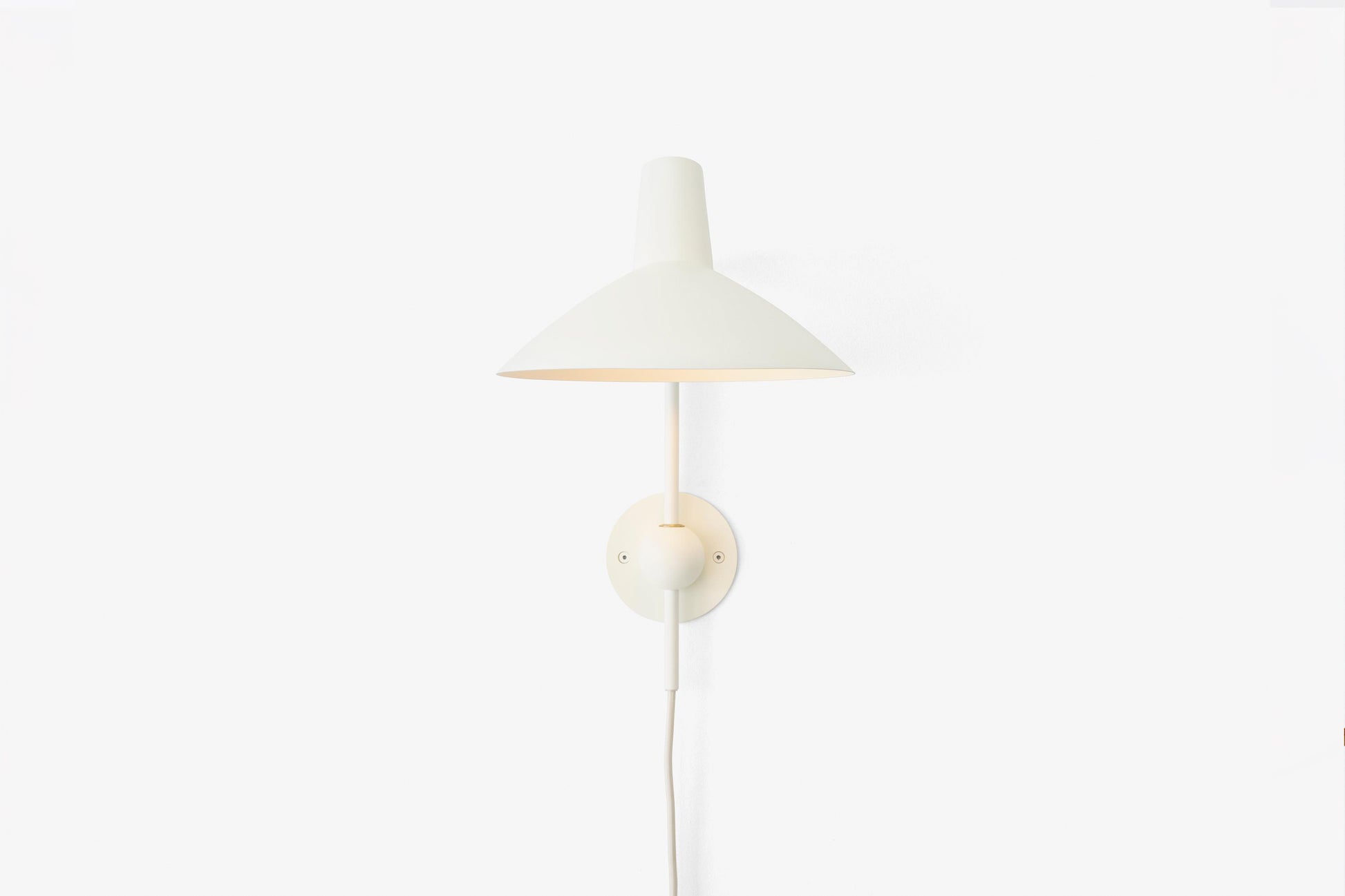 An adaptation inspired by sketches of the original lamp by Hvidt & Mølgaard, the Tripod wall lamp remains true to the essence of the Tripod design. Crafted from lacquered aluminum, the wall lamp is anchored by a spherical base that establishes a visually solid foundation, while the shade’s swivel feature allows the lamp to distribute a generous diffusion of light.